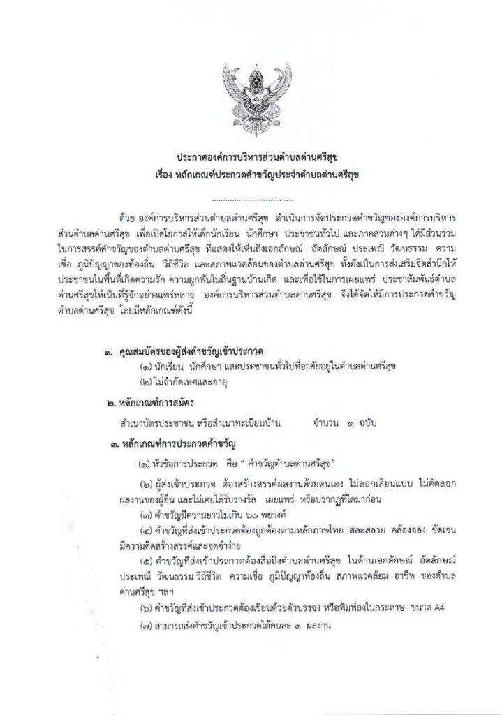 ข่าวประชาสัมพันธ์ขอเชิญร่วมประกวดคำขวัญตำบลด่านศรีสุข Posted on 2 ธันวาคม 2024 by องค์การบริหารส่วนตําบล ด่านศรีสุข 02 ธ.ค. หลักเกณฑ์การประกวด และใบสมัครประกวดคำขวัญ Attachments หลักเกณฑ์การประกวด และใบสมัครประกวดคำขวัญ (628 kB)หลักเกณฑ์การประกวด และใบสมัครประกวดคำขวัญ (628 kB) การประกวดหนูน้อย The best kid of Photak ประจำปี 2567 ประกวดราคาจ้างก่อสร้างถนนคอนกรีตเสริมเหล็ก จากบ้านนายชัยยา นอกตะแบก หมู่ที่ 5 ถึงหอตาปู่ บ้านดอนขนุน หมู่ที่ 5 ด้วยวิธีประกวดราคาอิเล็กทรอนิกส์ (e-bidding)
