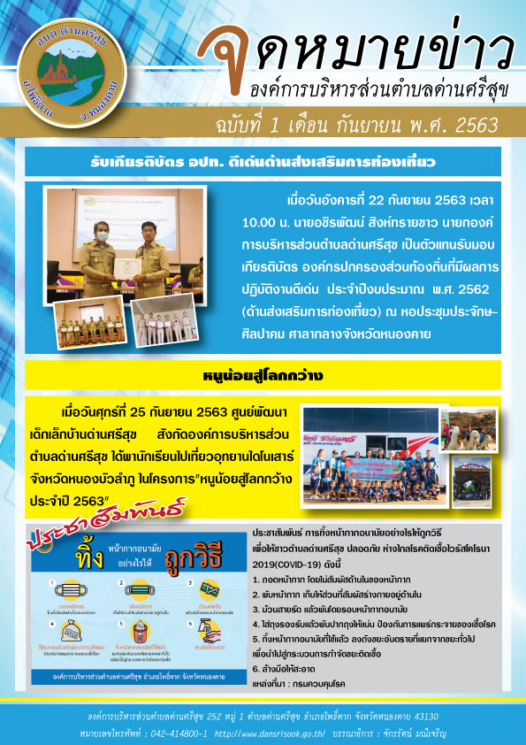 ข่าวประชาสัมพันธ์จดหมายข่าว องค์การบริหารส่วนตำบลด่านศรีสุข Posted on 28 กันยายน 2020 by Jakkarat Maneejaroen 28 ก.ย. จดหมายข่าว ฉบับที่ 1 เดือนกันยายน 2563 เชิญชวนร่วมกิจกรรมรณรงค์แผนปฏิบัติการคัดแยกขยะก่อนทิ้ง ประกาศ เรื่อง ยกเลิกการใช้สำเนาบัตรประจำตัวประชาชน และสำเนาทะเบียนบ้านหรือหนังสือรับรองนิติบุคคล