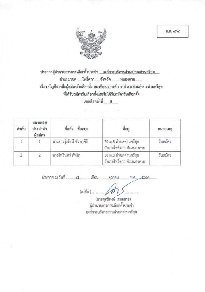 ข่าวประชาสัมพันธ์บัญชีรายชื่อผู้สมัครรับเลือกตั้ง สมาชิกสภาองค์การบริหารส่วนตำบลด่านศรีสุข เขตเลือกตั้งที่ 8 (ส.ถ.4/4 ,ส.ถ.4/5) Posted on 8 พฤศจิกายน 2021 by องค์การบริหารส่วนตําบล ด่านศรีสุข 08 พ.ย. ส.อบต.ม.8 Attachments ส.อบต.ม.8 (395 kB) บัญชีรายชื่อผู้สมัครรับเลือกตั้ง สมาชิกสภาองค์การบริหารส่วนตำบลด่านศรีสุข เขตเลือกตั้งที่ 7 (ส.ถ.4/4 ,ส.ถ.4/5) บัญชีรายชื่อผู้สมัครรับเลือกตั้ง สมาชิกสภาองค์การบริหารส่วนตำบลด่านศรีสุข เขตเลือกตั้งที่ 9 (ส.ถ.4/4 ,ส.ถ.4/5)