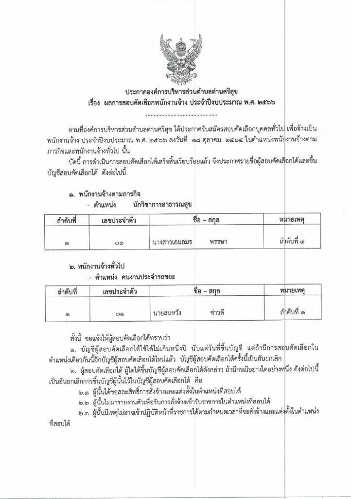 ประกาศ เรื่อง ผลการสอบคัดเลือกพนักงานจ้าง ประจำปีงบประมาณ พ.ศ. ๒๕๖๖