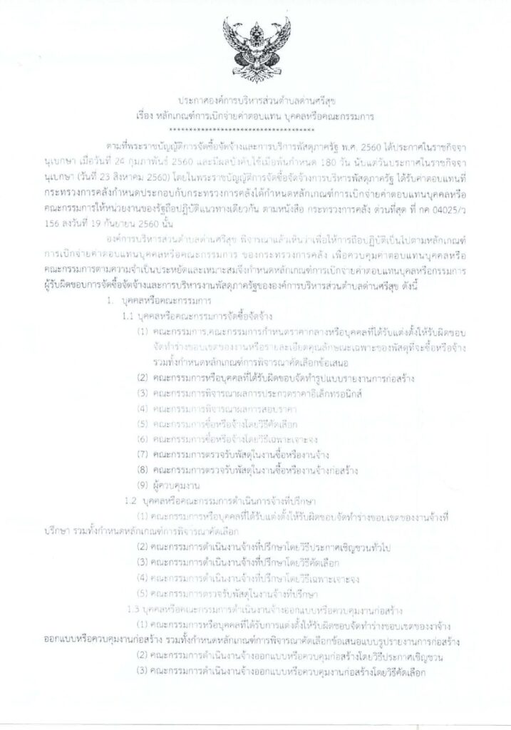 เรื่อง หลักเกณฑ์การเบิกจ่ายค่าตอบแทน บุคคลหรือคณะกรรมการ