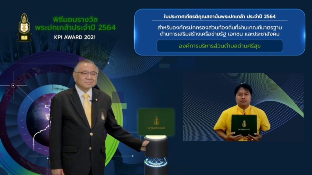 เมื่อวันอาทิตย์ที่ ๗ พฤศจิกายน ๒๕๖๔ นายสุทธิพงษ์ เสมอสาย ผู้อำนวยการกองช่าง รักษาราชการแทนปลัด ปฏิบัติหน้าที่นายกองค์การบริหารส่วนตำบลด่านศรีสุข ได้เป็นตัวแทนรับมอบใบประกาศเกียรติคุณสถาบันพระปกเกล้า ประจำปี ๒๕๖๔ สำหรับองค์กรปกครองส่วนท้องถิ่นที่ผ่านเกณฑ์มาตรฐาน ด้านการเสริมสร้างเครือข่ายรัฐ เอกชน และประชาสังคม โดยการรับมอบใบประกาศเกียรติคุณครั้งนี้ จัดในรูปแบบออนไลน์ ผ่านระบบ Zoom Meeting