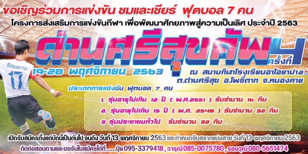 ข่าวประชาสัมพันธ์เปิดรับสมัครทีมเข้าร่วมการแข่งขันกีฬาฟุตบอล 7 คน “ด่านศรีสุขคัพ ครั้งที่ 4” ดาวน์โหลดระเบียบการแข่งขันและใบสมัคร ได้ที่นี่ Posted on 26 ตุลาคม 2020 by Jakkarat Maneejaroen 26 ต.ค. ใบสมัครฟุตบอล 7 คนด่านศรีสุขคัพ ครี้งที่ 4 Attachments ใบสมัครฟุตบอล 7 คนด่านศรีสุขคัพ ครี้งที่ 4 (379 kB) ประกาศ เรื่อง ยกเลิกการใช้สำเนาบัตรประจำตัวประชาชน และสำเนาทะเบียนบ้านหรือหนังสือรับรองนิติบุคคล ประกาศ เรื่อง ตารางกำหนดการออกให้บริการจัดเก็บขยะมูลฝอยในเขตองค์การบริหารส่วนตำบลด่านศรีสุข