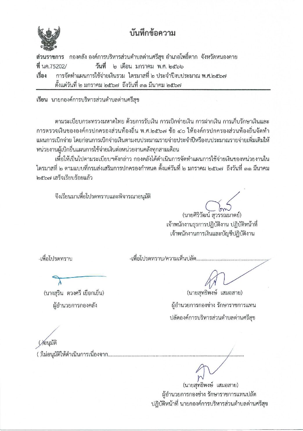 การจัดทำแผนการใช้จ่ายเงินรวม ไตรมาสที่ 2 ปี 2567