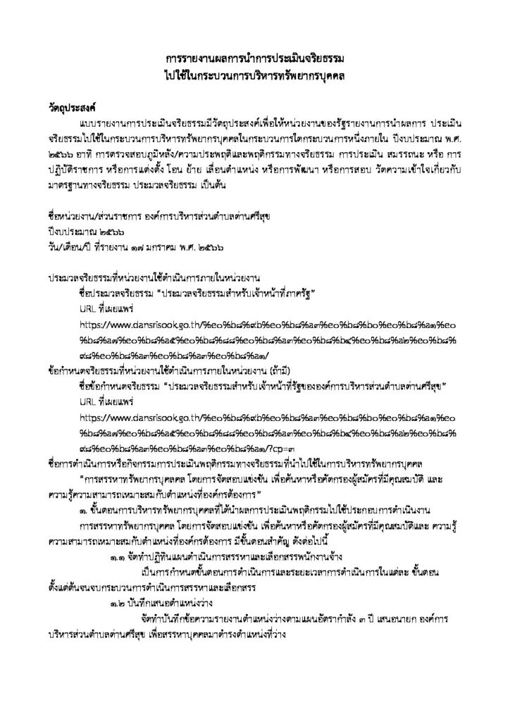 การรายงานผลการนำการประเมินจริยธรรม ไปใช้ในกระบวนการบริหารทรัพยากรบุคคล