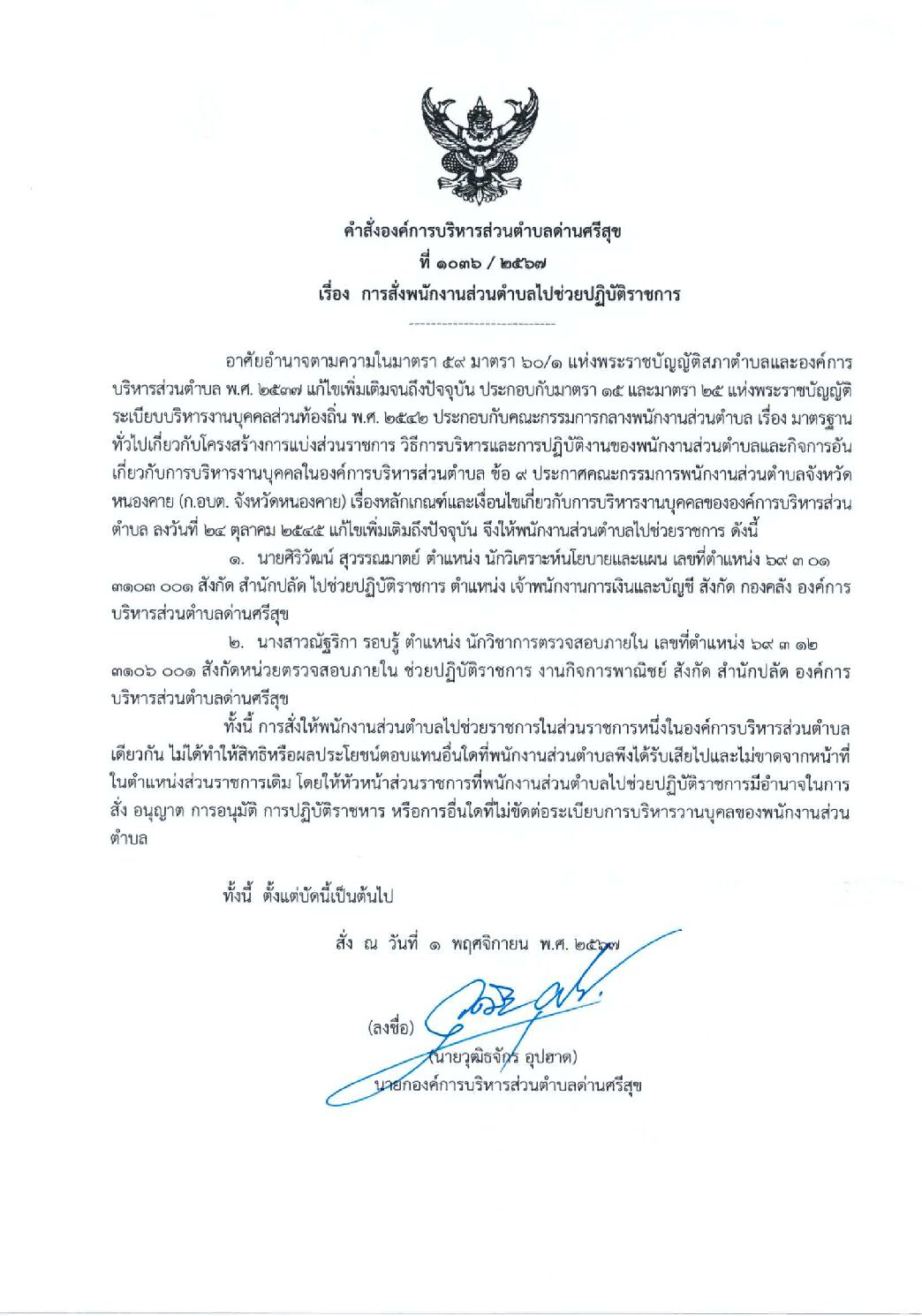 คำสั่งองค์การบริหารส่วนตำบลด่านศรีสุข