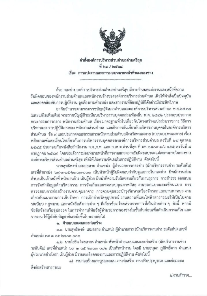 คำสั่งองค์การบริหารส่วนตำบลด่านศรีสุข