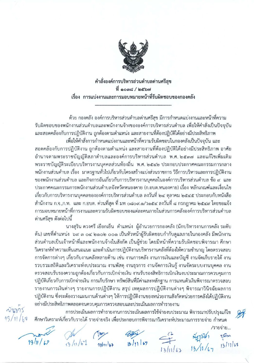 คำสั่งองค์การบริหารส่วนตำบลด่านศรีสุข