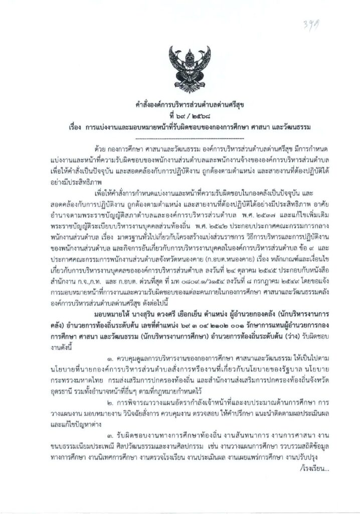 คำสั่งองค์การบริหารส่วนตำบลด่านศรีสุข