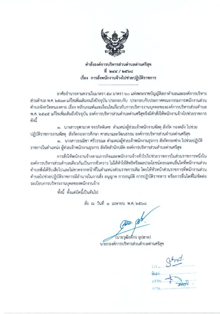 คำสั่งองค์การบริหารส่วนตำบลด่านศรีสุข