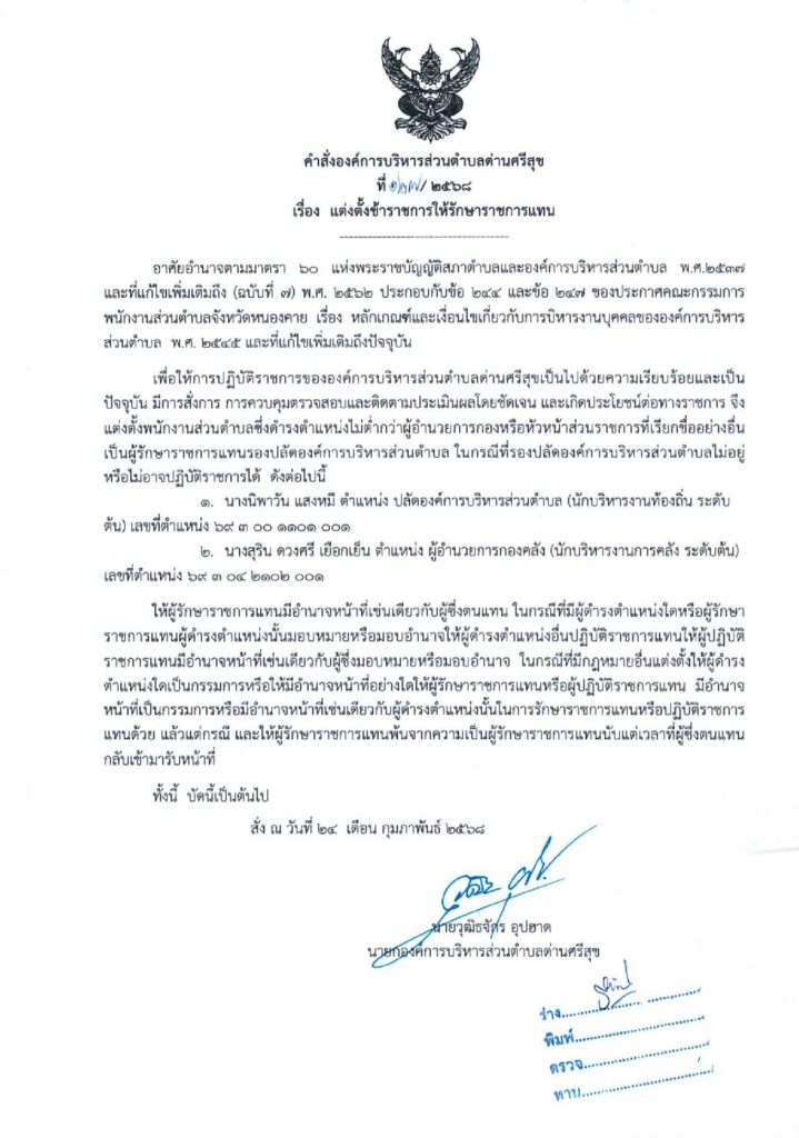 คำสั่งองค์การบริหารส่วนตำบลด่านศรีสุข