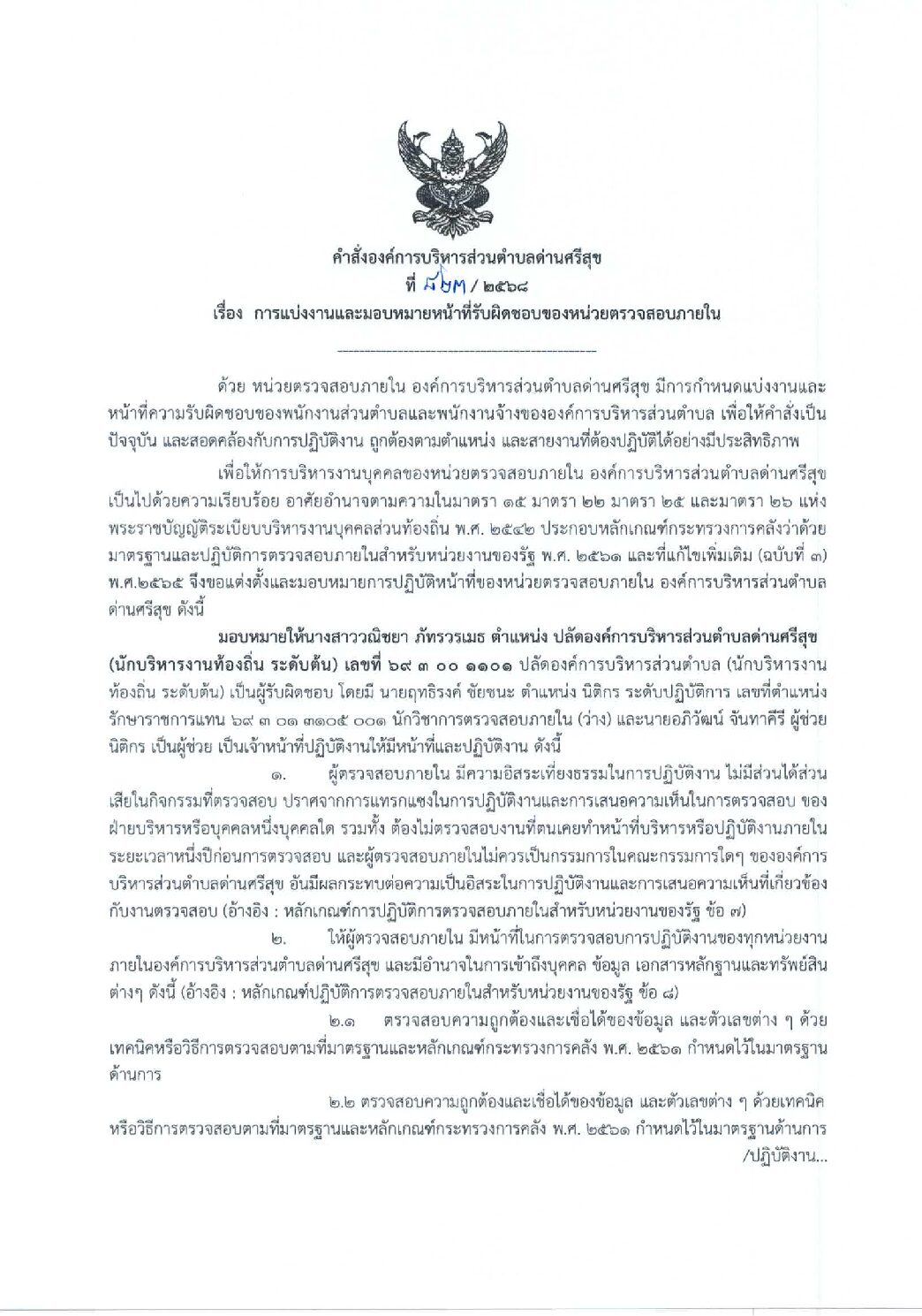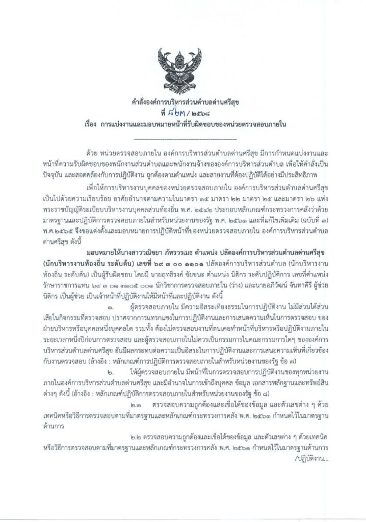 คำสั่งองค์การบริหารส่วนตำบลด่านศรีสุข