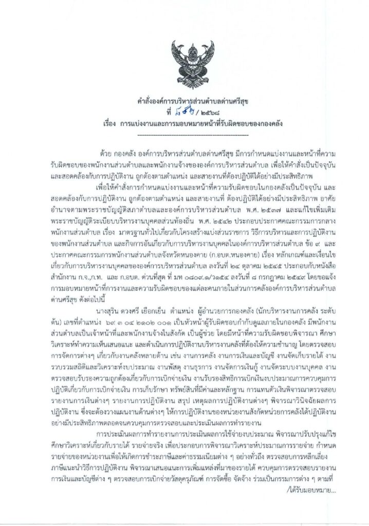 คำสั่งองค์การบริหารส่วนตำบลด่านศรีสุข