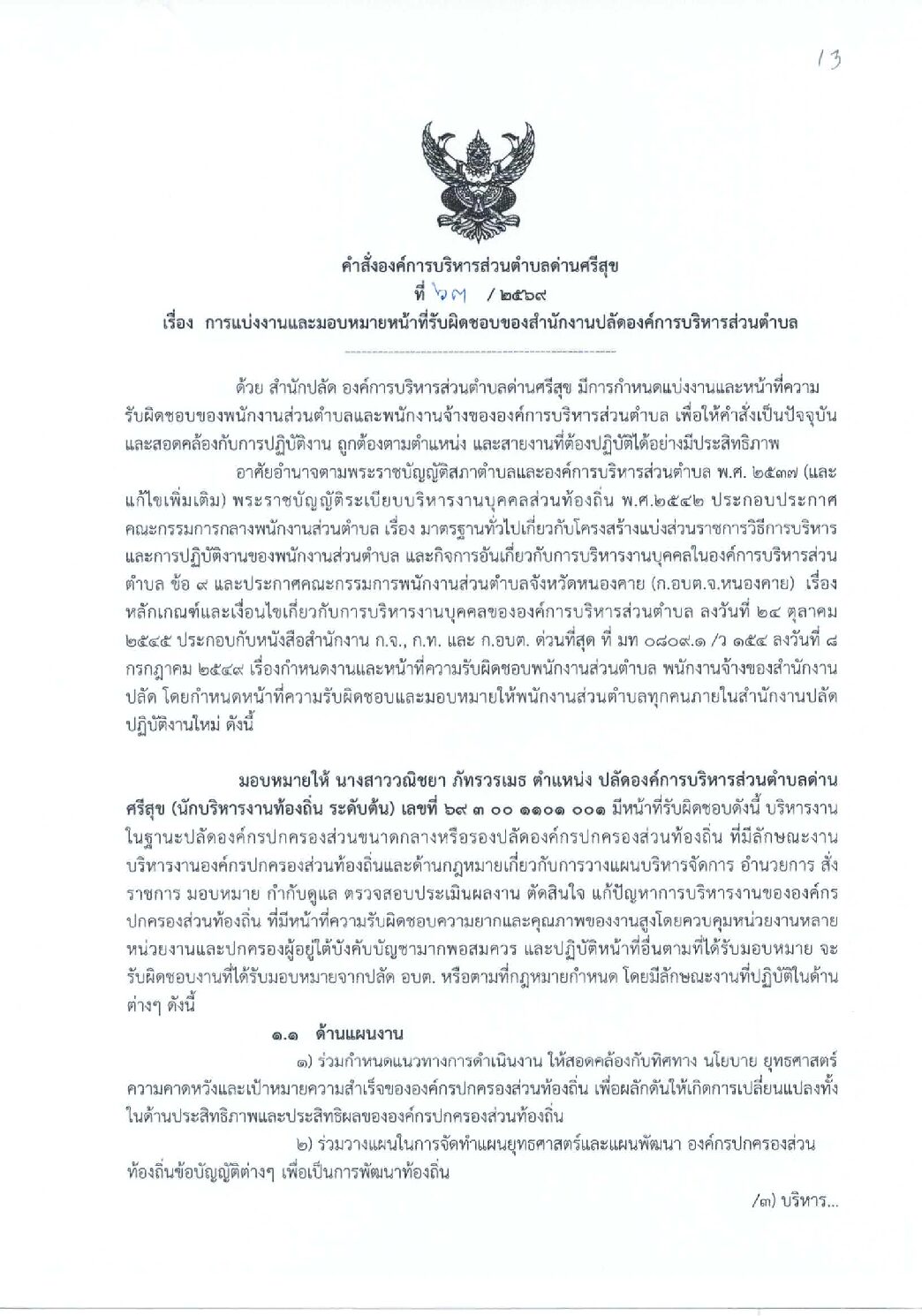 คำสั่ง เรื่อง การแบ่งงานและมอบหมายหน้าที่รับผิดชอบของสำนักงานปลัดองค์การบริหารส่วนตำบล 02 ก.พ. Download Download is available until [expire_date] Version Download 2 File Size 4.02 MB File Count 1 Create Date 2 กุมภาพันธ์ 2026 Last Updated 4 กุมภาพันธ์ 2026 คำสั่ง เรื่อง การแบ่งงานและมอบหมายหน้าที่รับผิดชอบของสำนักงานปลัดองค์การบริหารส่วนตำบล คำสั่งที่ 63 ทับ 2569 Attachments คำสั่งที่ 63 ทับ 2569 (5 MB)คำสั่งที่ 63 ทับ 2569 (5 MB) คำสั่ง เรื่อง แต่งตั้งข้าราชการให้รักษาราชการแทน(ณ วันที่ 2 กุมภาพันธ์ 2569) คำสั่ง เรื่อง การมอบอำนาจให้รองปลัดองค์การบริหารส่วนตำบล ปฏิบัติราชการแทนปลัดองค์การบริหารส่วนตำบลด่านศรีสุข