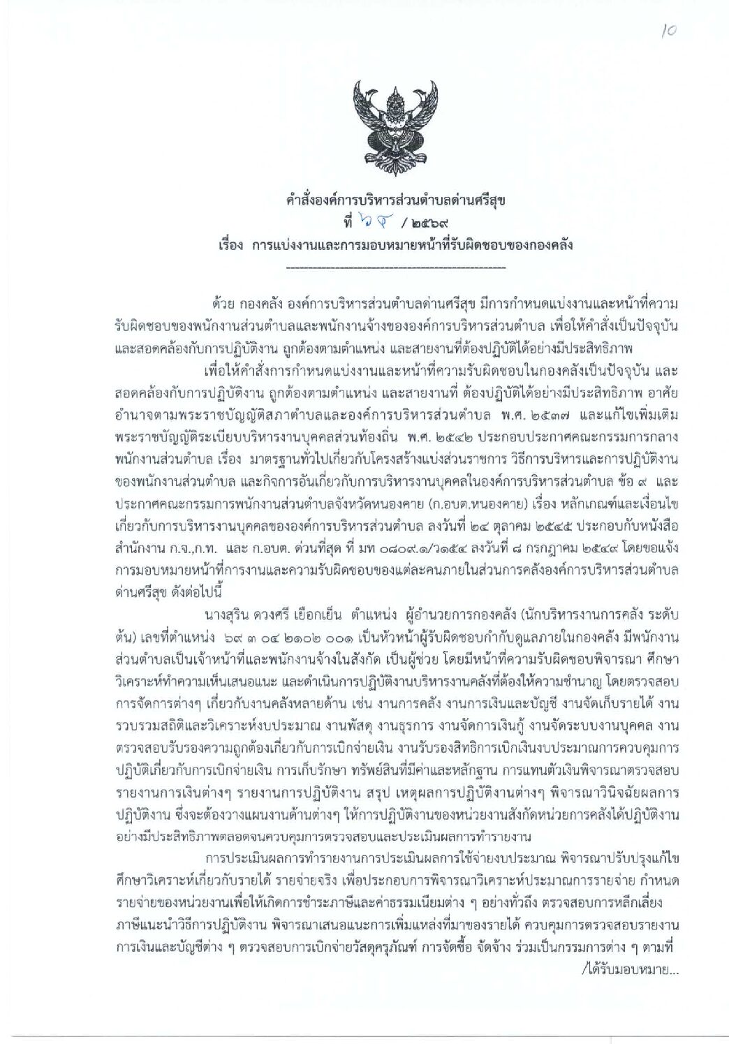 คำสั่งองค์การบริหารส่วนตำบลด่านศรีสุข