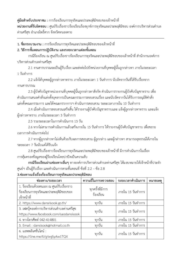 คู่มือสำหรับประชาชนการร้องเรียนการทุจริตและประพฤติมิชอบของเจ้าหน้าที่
