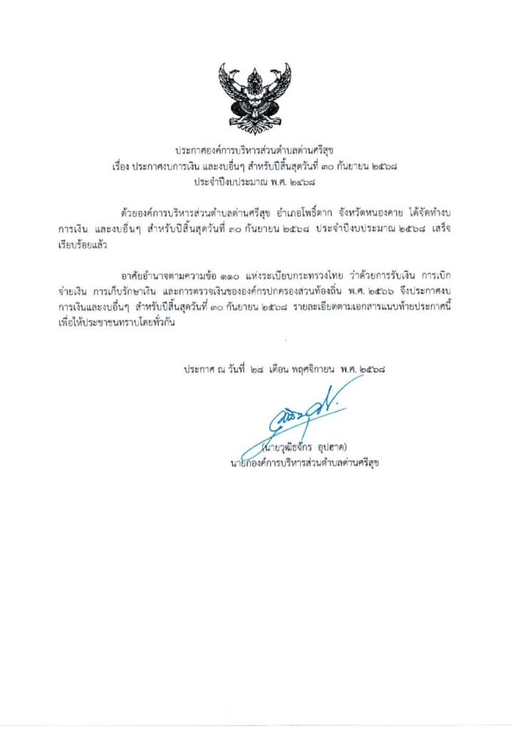 งบแสดงสถานะการเงิน 2568