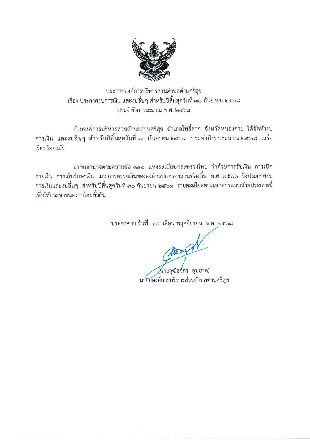 ณ วันที่ 30 กันยายน 2568