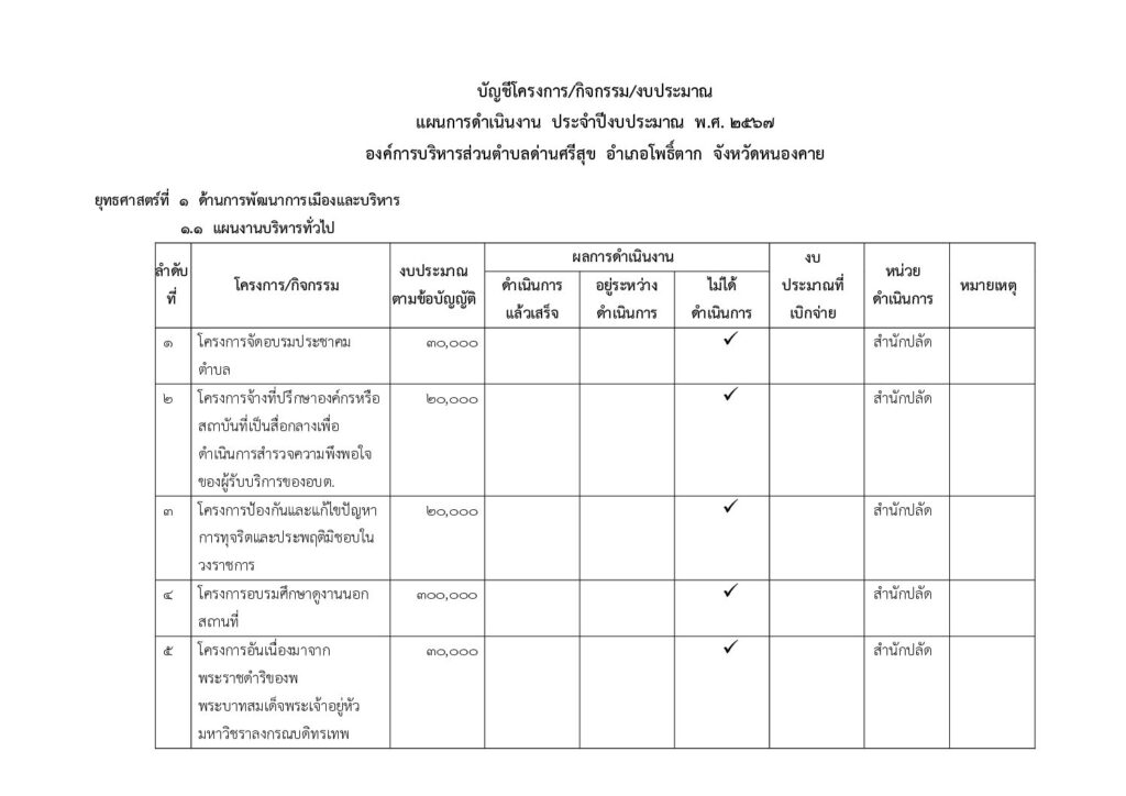 บัญชีโครงการ/กิจกรรม/งบประมาณ แผนการดำเนินงาน ประจำปีงบประมาณ พ.ศ. 2567