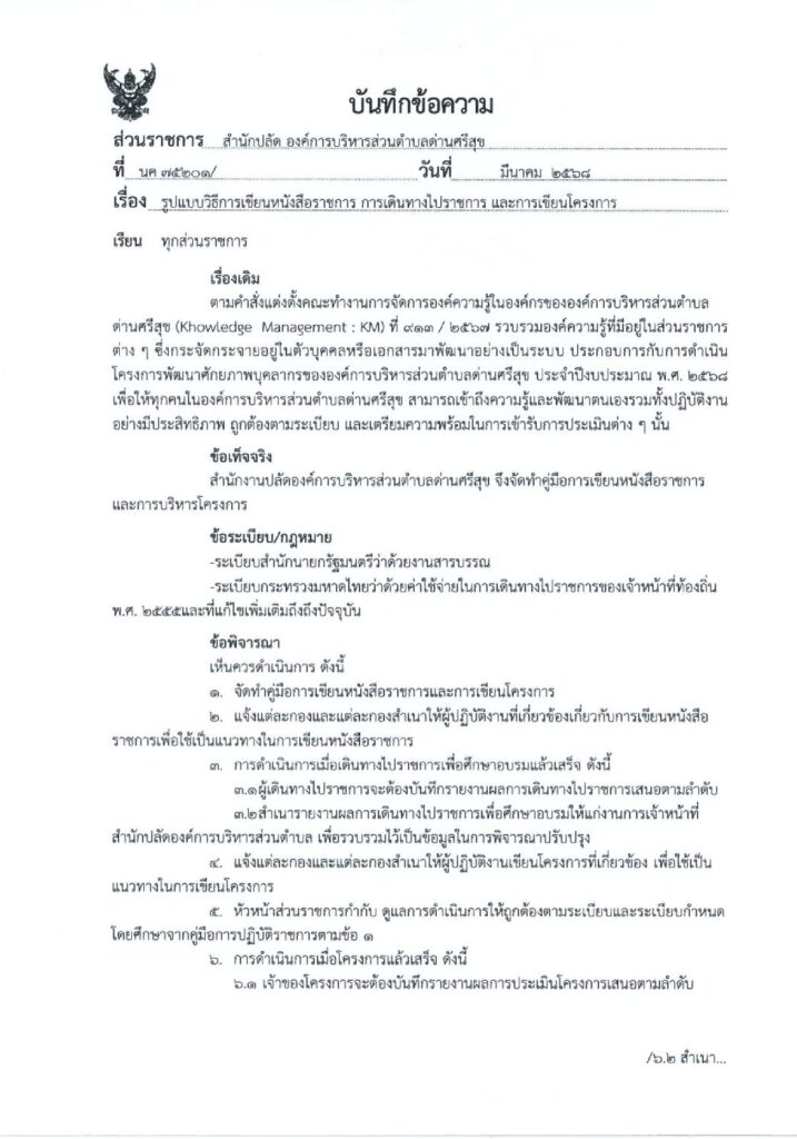 บันทึกข้อความ รูปแบบวิธีการเขียนหนังสือราชการ การเดินทางไปราชการ และการเขียนโครงการ