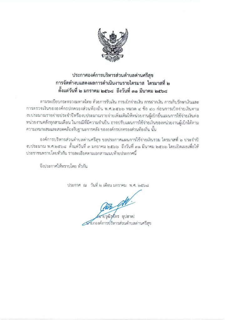 ประกาศการจัดทำงบแสดงผลการดำเนินงานรายไตรมาส ไตรมาสที่ 2/2568