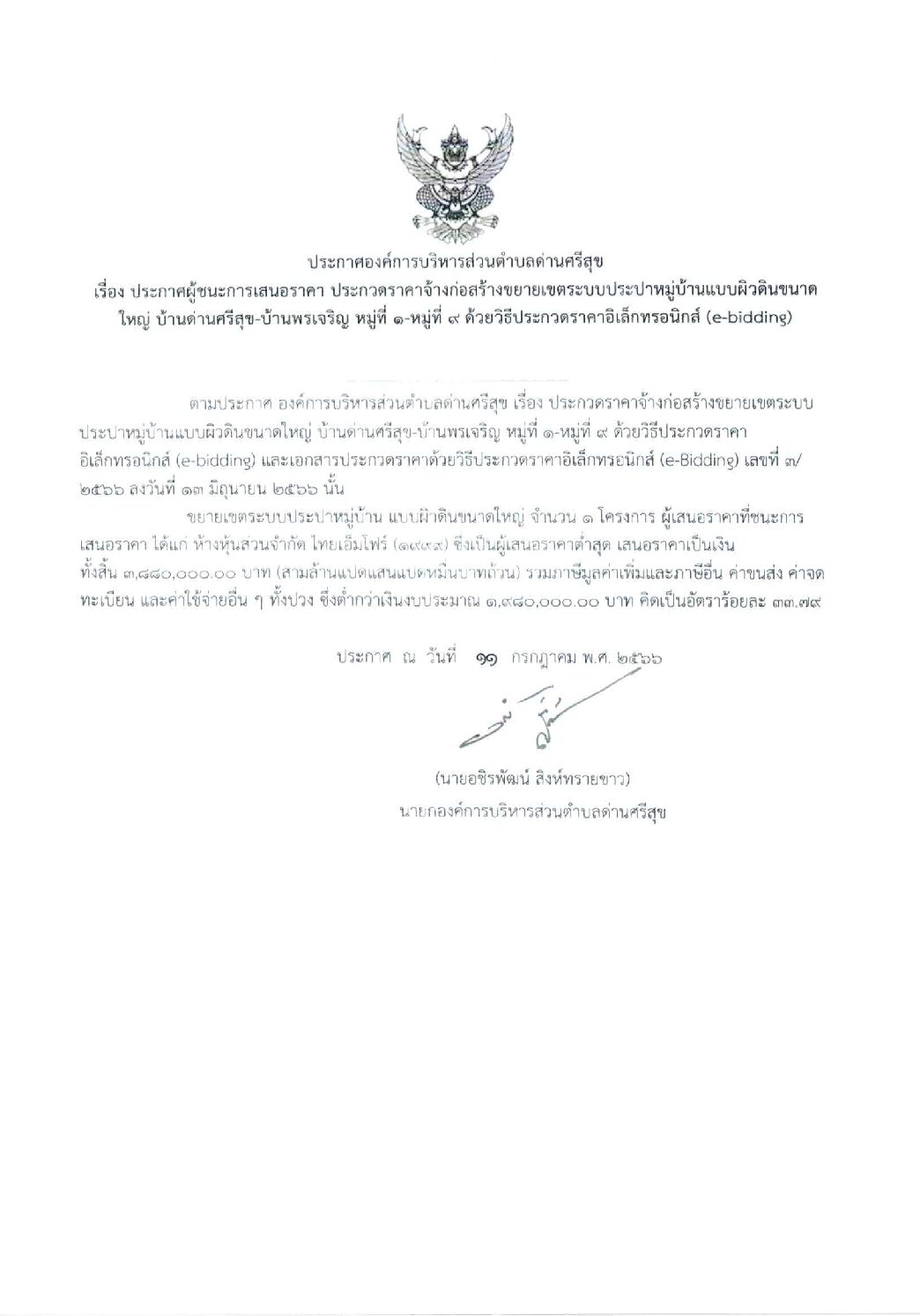 บ้านด่านศรีสุข หมู่ 1 -บ้านพรเจริญ หมู่ 9 ด้วยวิธีประกวดราคาอิเล็กทรอนิกส์(e-bidding)