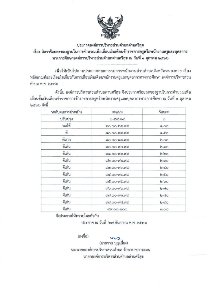 ประกาศอัตราร้อยละของฐานในการคำนวณเพื่อเลื่อเงินเดือนข้าราชการครู