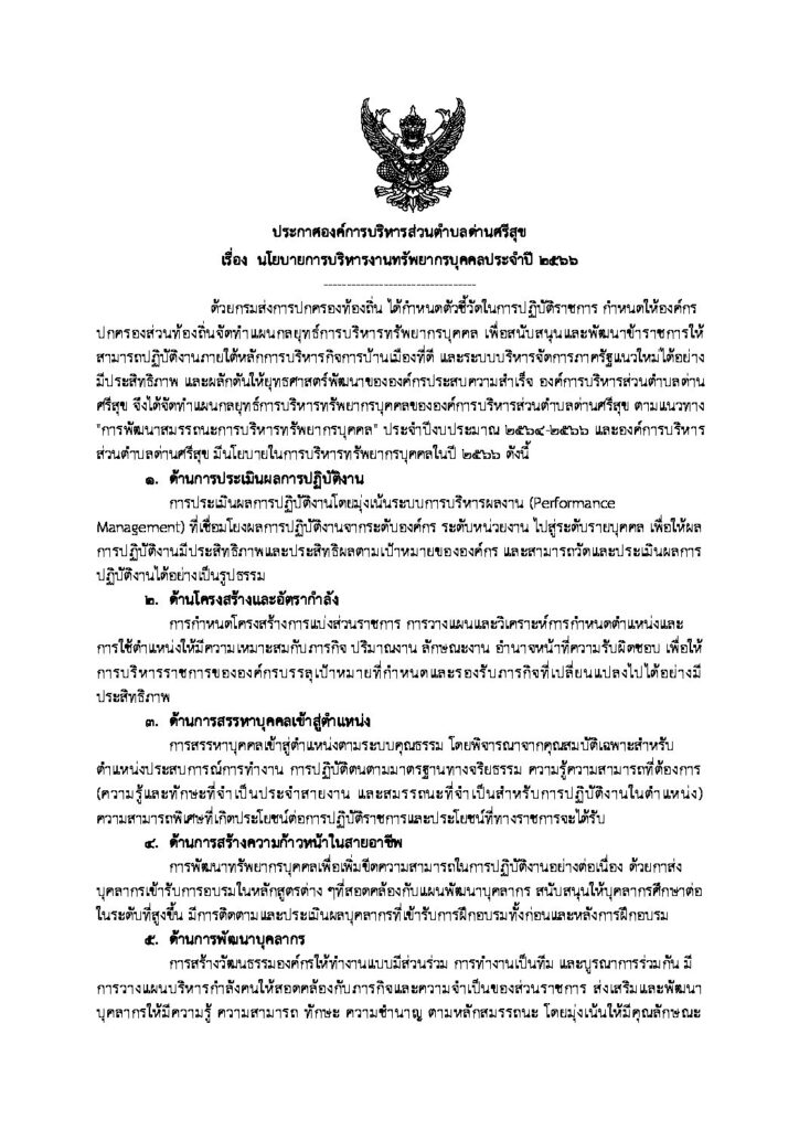 ประกาศ นโยบายการบริหารงานทรัพยากรบุคคลประจำปี 2566 01 ต.ค. Download Download is available until [expire_date] Version Download 2 File Size 272.14 KB File Count 1 Create Date 1 ตุลาคม 2022 Last Updated 19 เมษายน 2023 ประกาศ นโยบายการบริหารงานทรัพยากรบุคคลประจำปี 2566 Attachments นโยบายการบริหารงานทรัพยากรบุคคลประจำปี 2566 (273 kB) ประกาศ เรื่อง ประกาศผู้ชนะการเสนอราคา ประกวดราคาจ้างก่อสร้างโครงการเสริมผิวแอสฟัลท์ติกคอนกรีตบ้านด่านศรีสุข ถึงบ้านพรเจริญ(e-bidding) ประกาศเจตนารมณ์นโยบาย No Gift Policy จากการปฏิบัติหน้าที่ พ.ศ. 2566