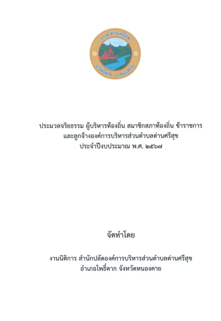 ประกาศ เรื่อง ประมวลจริยธรรม ผู้บริหาร สมาชิกสภา และข้าราชการของ อบต.ด่านศรีสุข