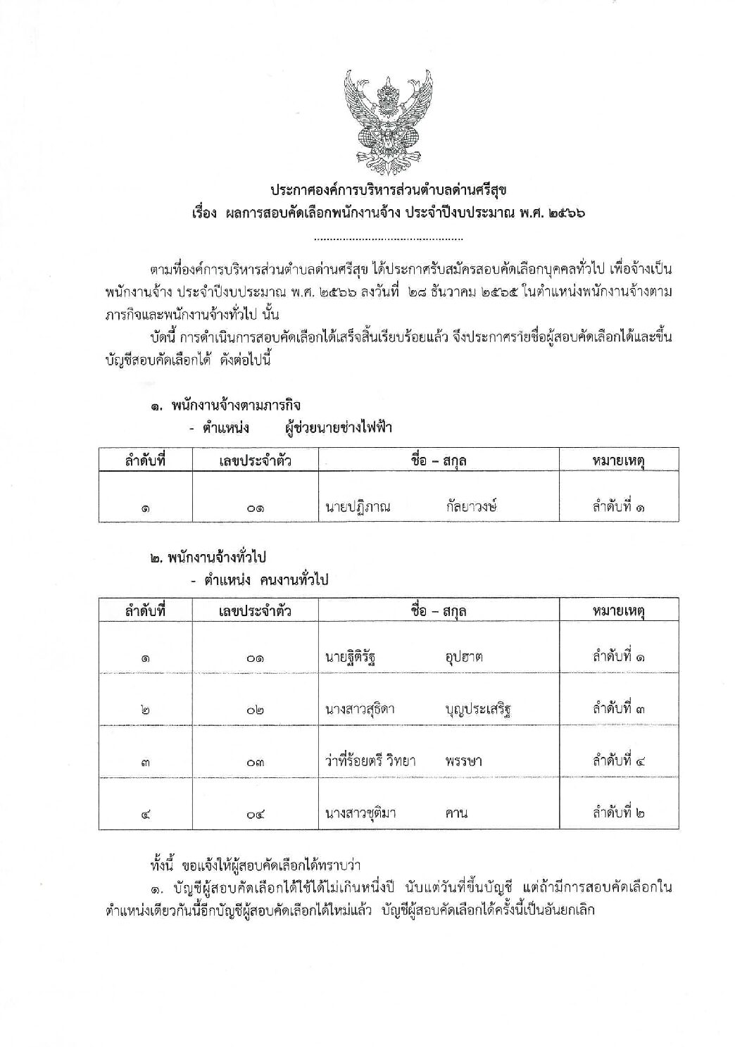 ประกาศ เรื่อง ผลการสอบคัดเลือกพนักงานจ้าง ประจำปี พ.ศ.2566