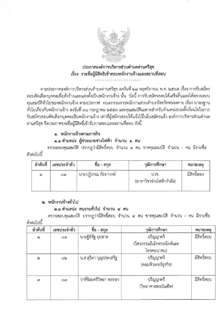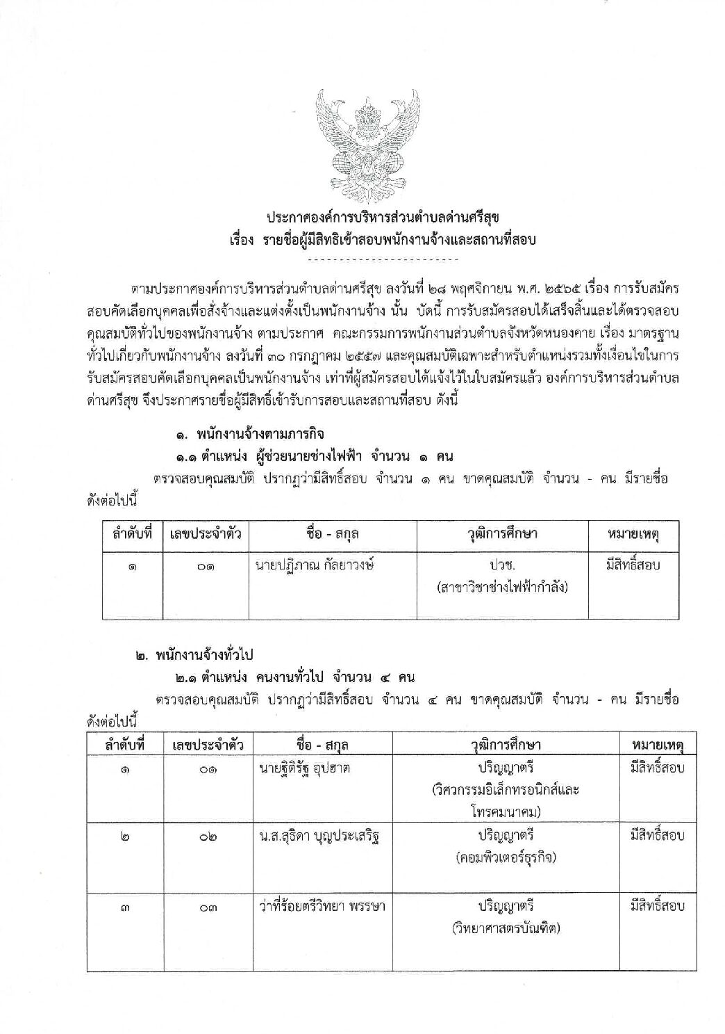ประกาศ รายชื่อผู้มีสิทธิเข้าสอบพนักงานจ้างและสถานที่สอบ