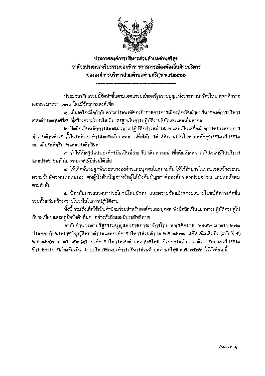 ประมวลจริยธรรม ของข้าราชการการเมืองท้องถิ่นฝ่ายบริหาร 2566 20 ม.ค. Download Download is available until [expire_date] Version Download 0 File Size 177.31 KB File Count 1 Create Date 20 มกราคม 2023 Last Updated 20 เมษายน 2023 ประมวลจริยธรรม ของข้าราชการการเมืองท้องถิ่นฝ่ายบริหาร 2566 Attachments ประมวลจริยธรรมของข้าราชการการเมืองท้องถิ่นฝ่ายบริหาร 2566 (178 kB) ประมวลจริยธรรม ของข้าราชการ พนักงานส่วนตำบล และลูกจ้าง พ.ศ.2566 ประมวลจริยธรรม ของข้าราชการการเมืองท้องถิ่นฝ่ายสภาท้องถิ่น 2566