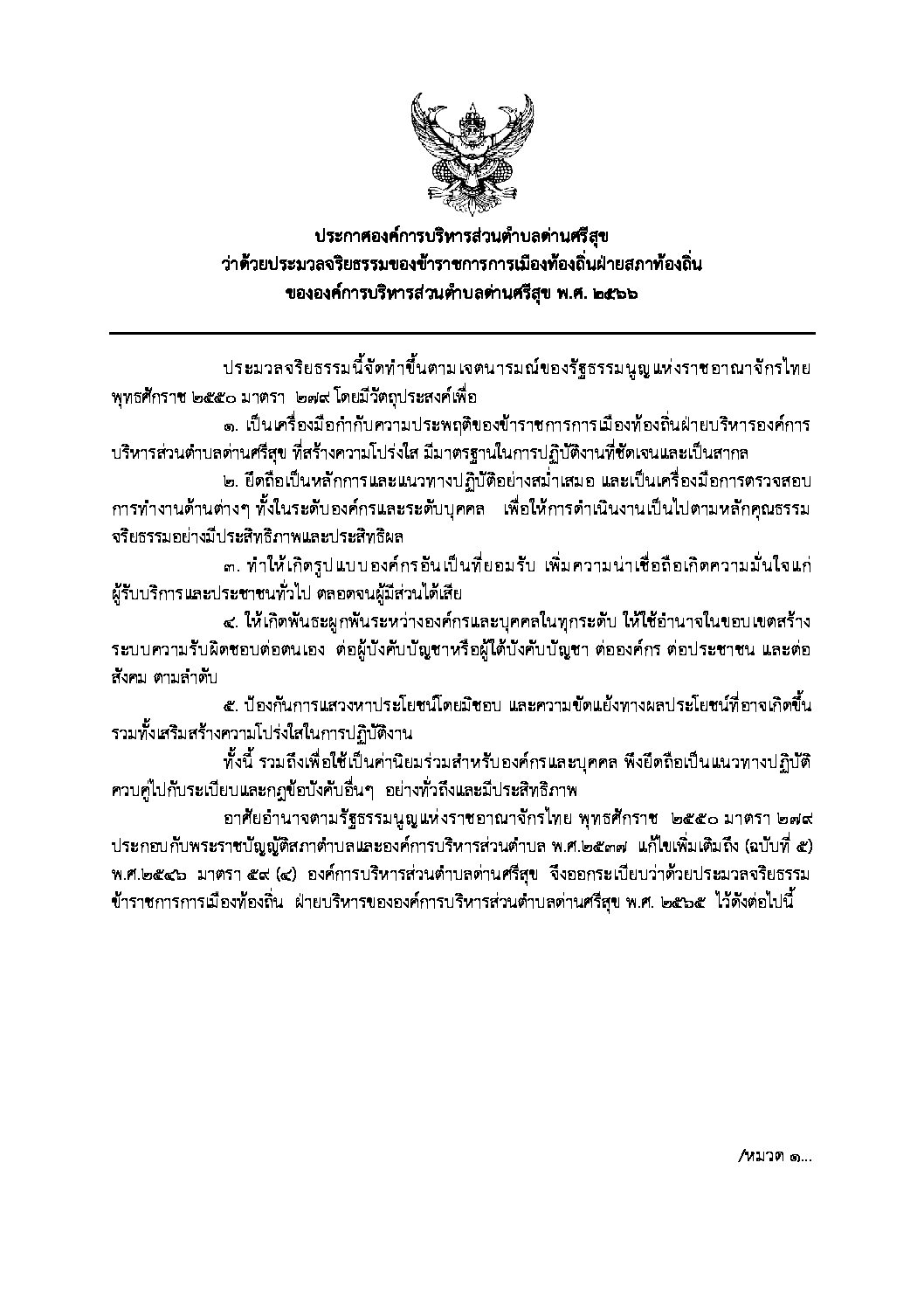 ประมวลจริยธรรม ของข้าราชการการเมืองท้องถิ่นฝ่ายสภาท้องถิ่น 2566 20 ม.ค. Download Download is available until [expire_date] Version Download 3 File Size 176.74 KB File Count 1 Create Date 20 มกราคม 2023 Last Updated 20 เมษายน 2023 ประมวลจริยธรรม ของข้าราชการการเมืองท้องถิ่นฝ่ายสภาท้องถิ่น 2566 Attachments ประมวลจริยธรรมของข้าราชการการเมืองท้องถิ่นฝ่ายสภาท้องถิ่น 2566 (177 kB) ประมวลจริยธรรม ของข้าราชการการเมืองท้องถิ่นฝ่ายบริหาร 2566 คณะทำงาน และแนวทางปฏิบัติตามมาตรฐานทางจริยธรรม 2566