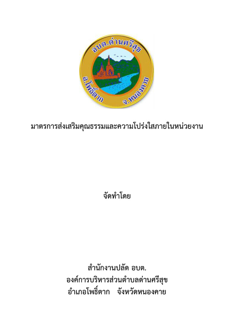 มาตรการส่งเสริมคุณธรรมและความโปร่งใสภายในหน่วยงาน 20 เม.ย. Download Download is available until [expire_date] Version Download 8 File Size 2.06 MB File Count 1 Create Date 20 เมษายน 2023 Last Updated 27 เมษายน 2023 มาตรการส่งเสริมคุณธรรมและความโปร่งใสภายในหน่วยงาน Attachments มาตรการส่งเสริมคุณธรรมและความโปร่งใสภายในหน่วยงาน (3 MB) การประเมินความเสี่ยงการทุจริต ประจำปีงบประมาณ พ.ศ. 2566 การดำเนินการตามนโยบายการบริหารทรัพยากรบุคคล ประจำปีงบประมาณ 2565 (ตุลาคม 2565–มีนาคม 2566)