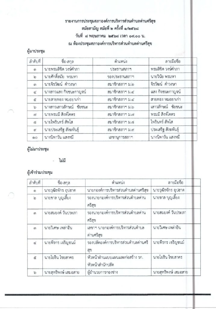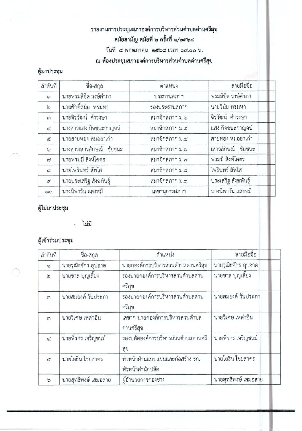 รายงานการประชุมสภาองค์การบริหารส่วนตำบลด่านศรีสุข