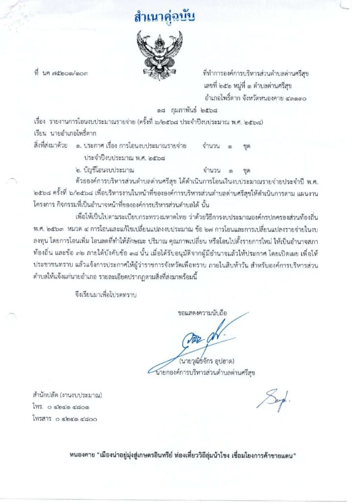 รายงานการโอนงบ ครั้งที่ 6 ทับ 2568
