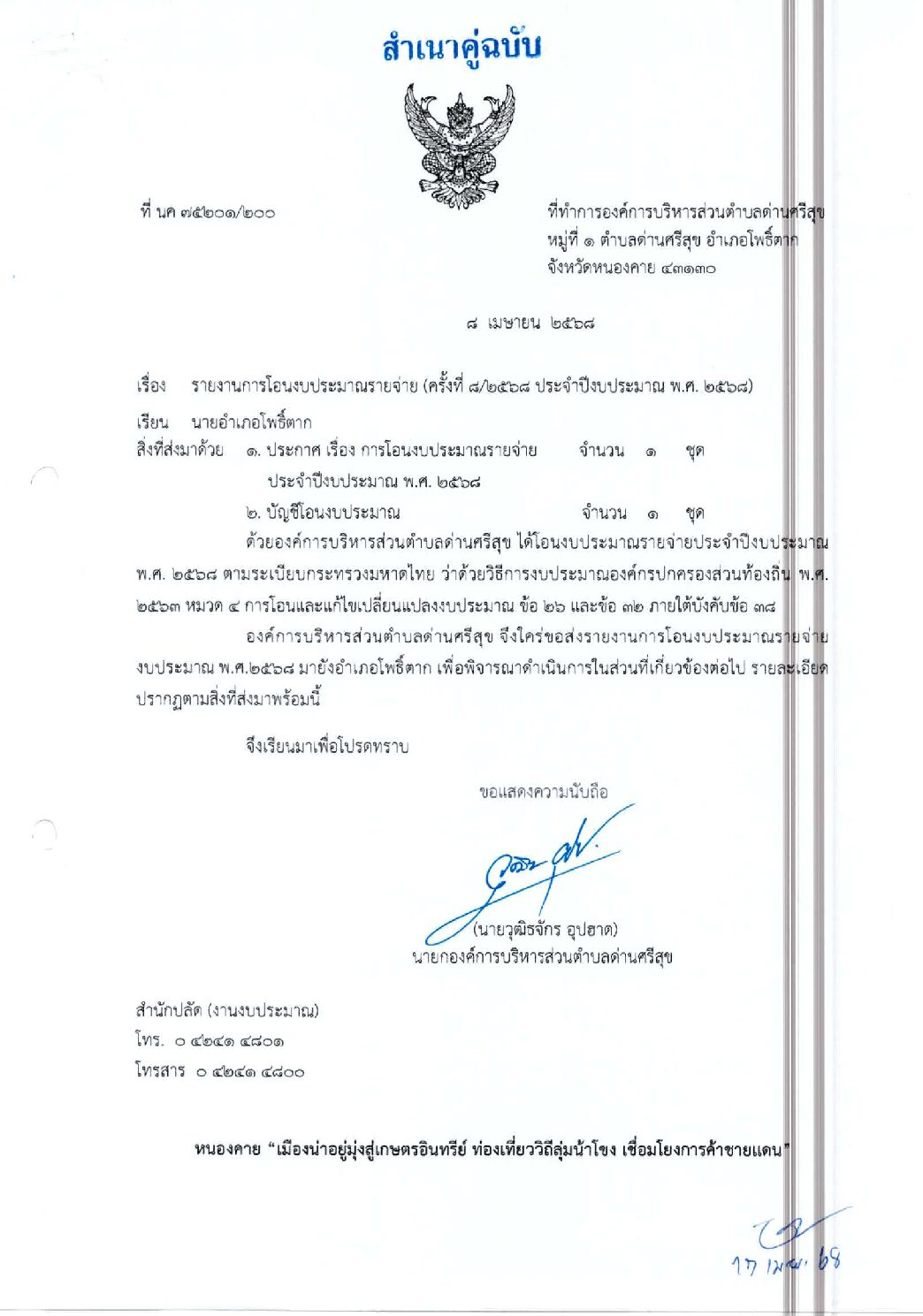 รายงานการโอนงบประมาณรายจ่าย (ครั้งที่ 8/2568 ประจำปีงบประมาณ พ.ศ. 2568)