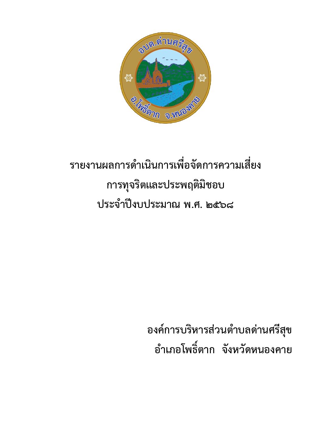 รายงานผลการดำเนินการเพื่อจัดการความเสี่ยง การทุจริตและประพฤติมิชอบ ประจำปีงบประมาณ พ.ศ.2568