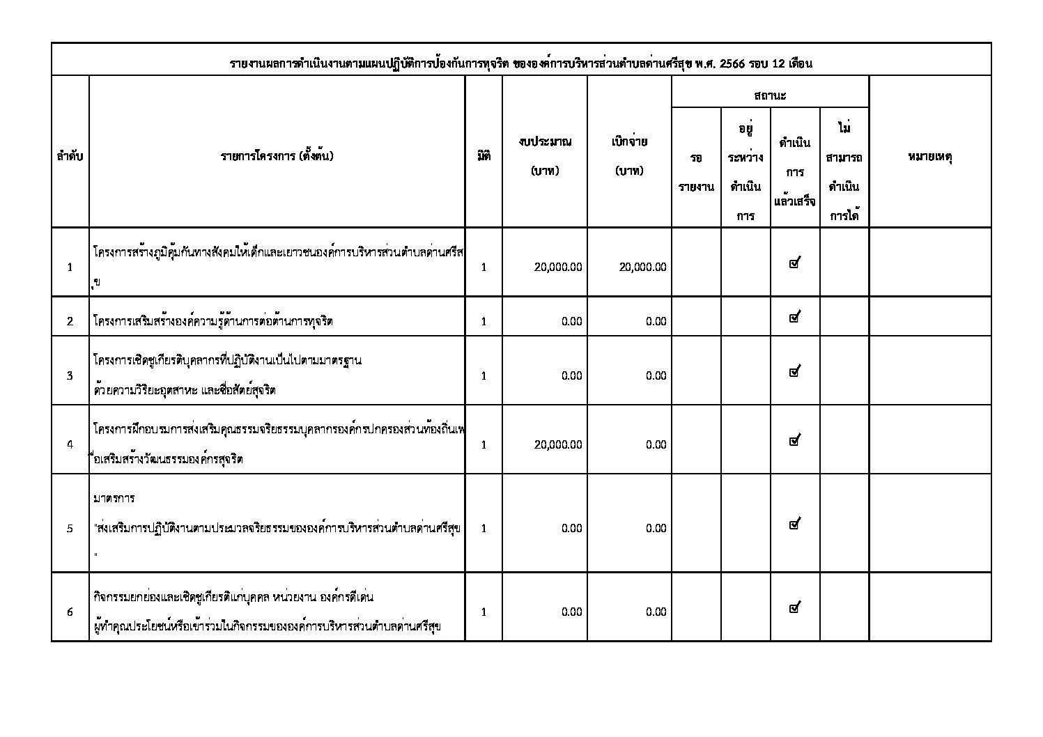 รายงานผลการดำเนินงานตามแผนปฏิบัติการป้องกันการทุจริต ขององค์การบริหารส่วนตำบลด่านศรีสุข 2566 (12 เดือน)