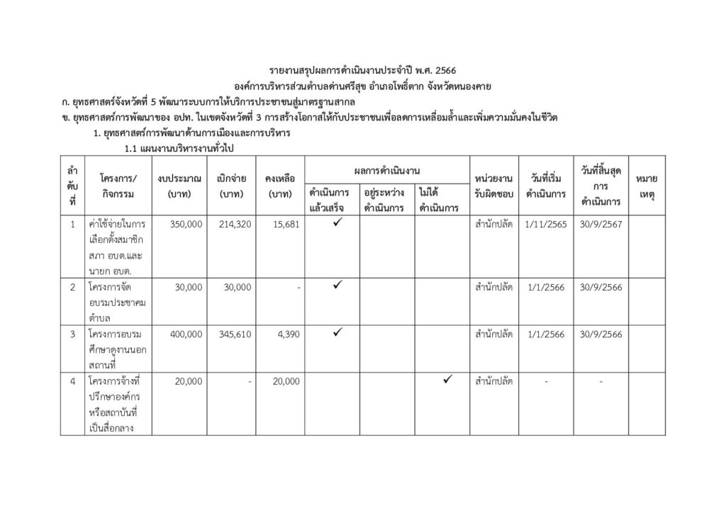 รายงานผลการดำเนินงาน ประจำปี 2566 30 เม.ย. Download Download is available until [expire_date] Version Download 0 File Size 212.00 KB File Count 1 Create Date 30 เมษายน 2024 Last Updated 30 เมษายน 2024 รายงานผลการดำเนินงาน ประจำปี 2566 รายงานสรุปผลการดำเนินงานประจำปี 2566 Attachments รายงานสรุปผลการดำเนินงานประจำปี 2566 (608 kB)รายงานสรุปผลการดำเนินงานประจำปี 2566 (608 kB) แผนการดำเนินงานพัฒนาบุคลากร ประจำปีงบประมาณ 2567 บัญชีโครงการ/กิจกรรม/งบประมาณ แผนการดำเนินงาน ประจำปีงบประมาณ พ.ศ. 2567