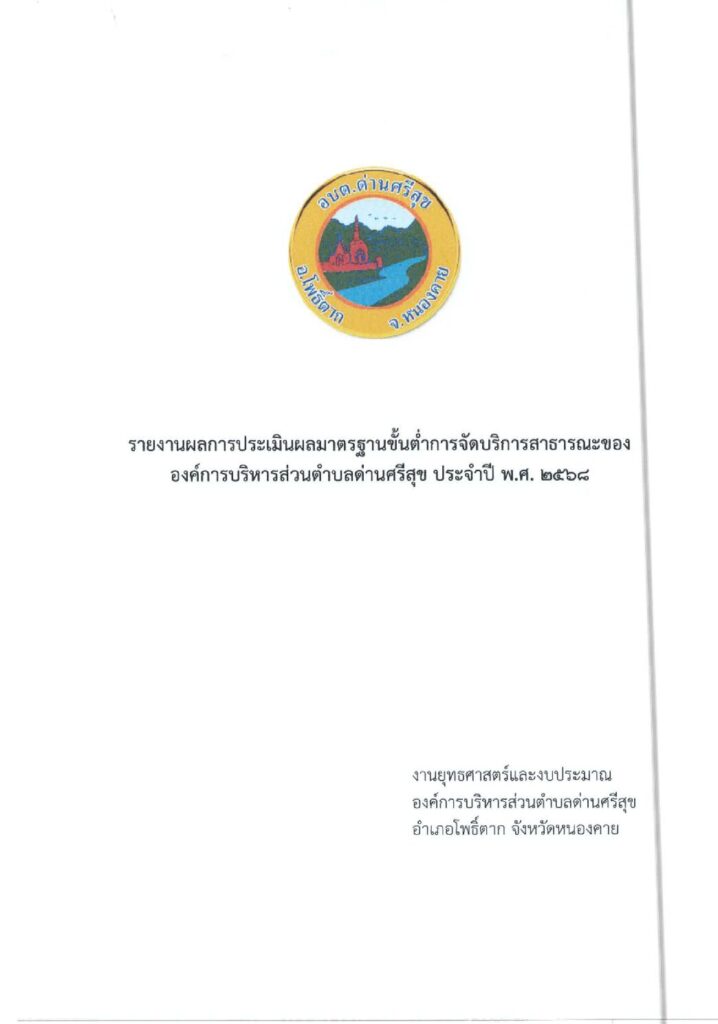 รายงานผลการประเมินผลมาตรฐานขั้นต่ำการจัดบริการสาธารณะของ องค์การบริหารส่วนตำบลด่านศรีสุข ประจำปี พ.ศ. 2568