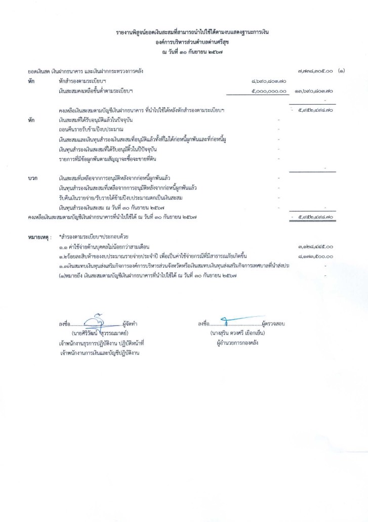 รายงานพิสูจน์ยอดเงินสะสมที่สามารถนำไปใช้ได้ตามงบแสดงฐานะการเงิน