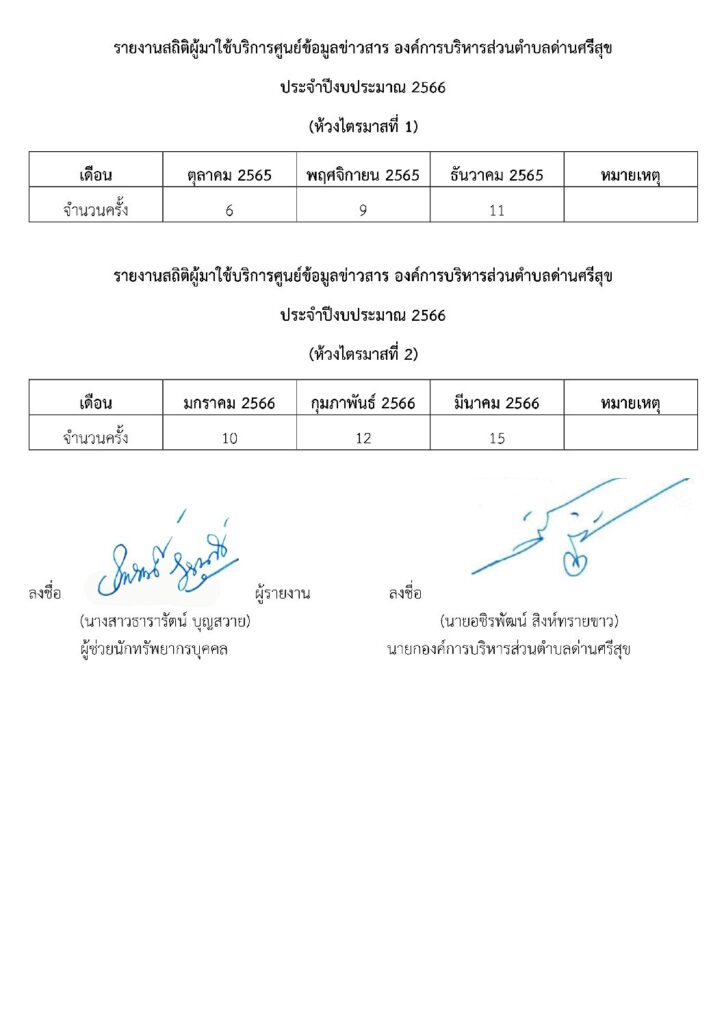 รายงานสถิติผู้มาใช้บริการศูนย์ข้อมูลข่าวสาร 2566 ครึ่งปีแรก