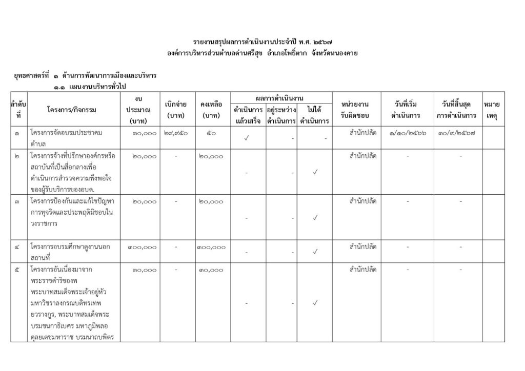 รายงานสรุปผลการดำเนินงานประจำปี พ.ศ. 2567