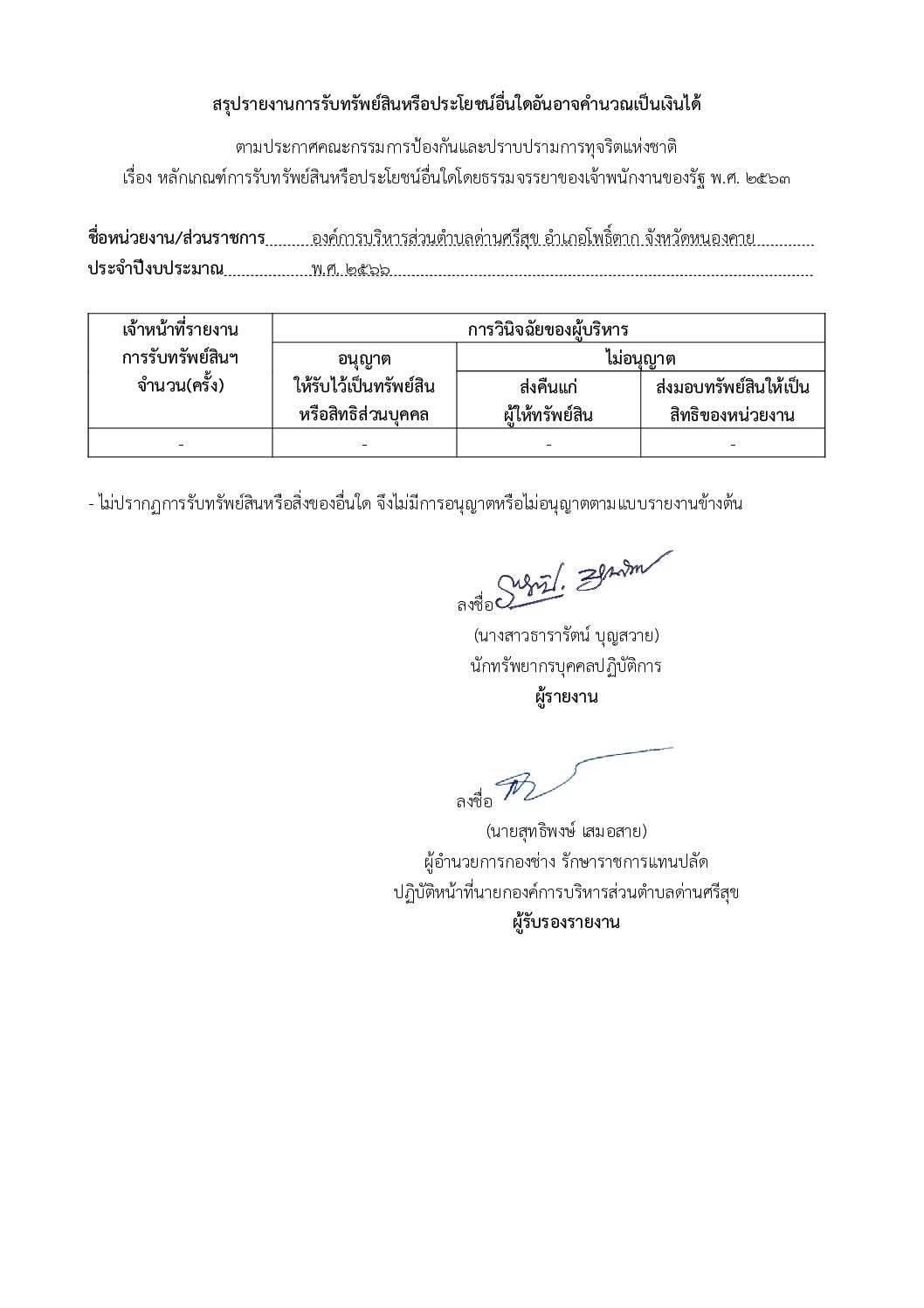 สรุปรายงานการรับทรัพย์สินหรือประโยชน์อื่นใดอันอาจคำนวณเป็นเงินได้ ประจำปี 2566