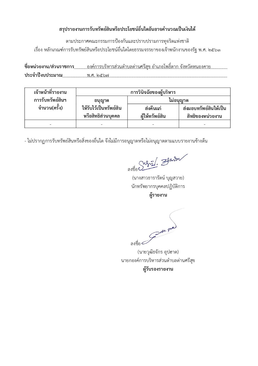สรุปรายงานการรับทรัพย์สินหรือประโยชน์อื่นใดอันอาจคำนวณเป็นเงินได้ ประจำปี 2567