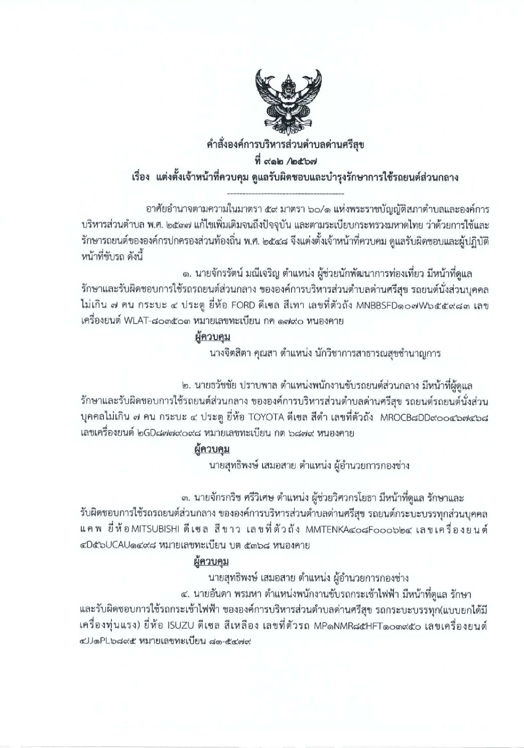 คำสั่งองค์การบริหารส่วนตำบลด่านศรีสุข