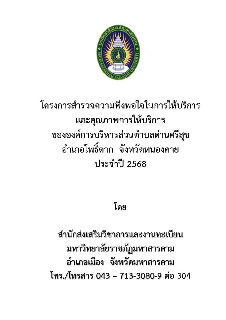 โครงการสำรวจความพึงพอใจในการให้บริการ และคุณภาพการให้บริการ ขององค์การบริหารส่วนตำบลด่านศรีสุข อำเภอโพธิ์ตาก จังหวัดหนองคาย ประจำปี 2568