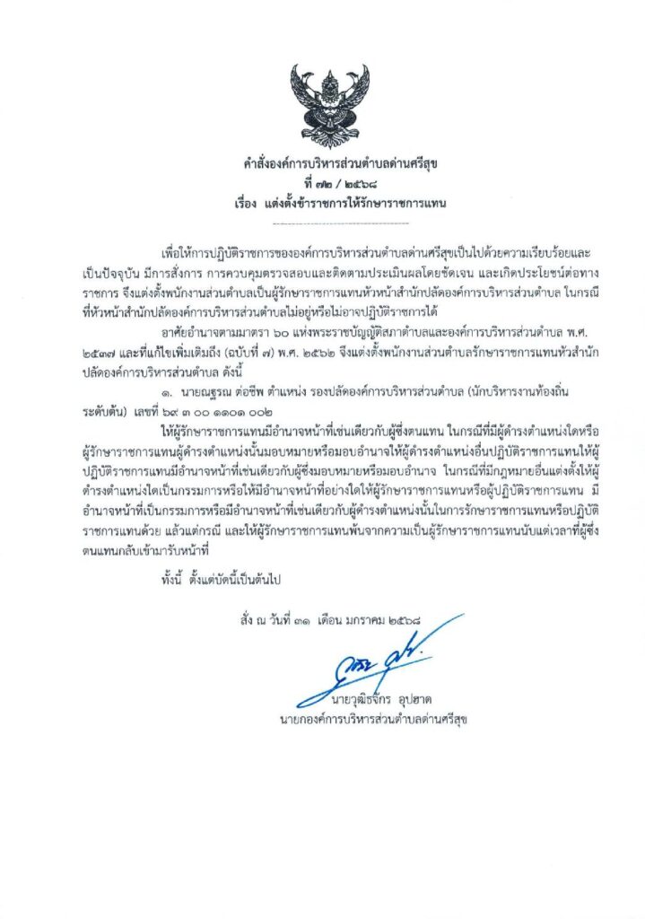 คำสั่งองค์การบริหารส่วนตำบลด่านศรีสุข